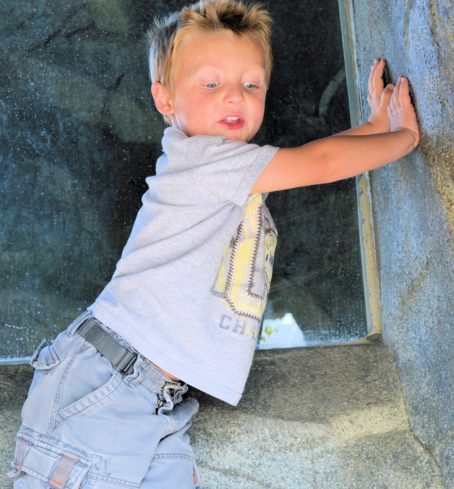 All Ryker wanted to see was the bears, here he is next to the polar bear statue